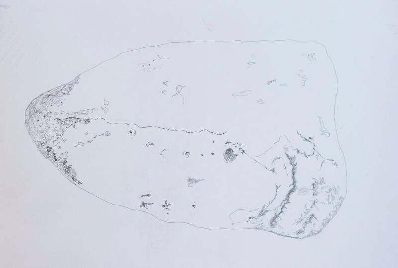 Brennan's drawing practice often explores the performative and ritual nature of drawing. There is an emphasis placed on the mediative and contemplative process as a political act whereby Brennan's observations leave minimal disruption of the environment. Short meditative walks source small stones which after been drawn are returned to their source. These drawing ceremonies at times result in miniature handmade books which offer a plank in an argument contra to the current bias toward the gigantic as found in much public art.